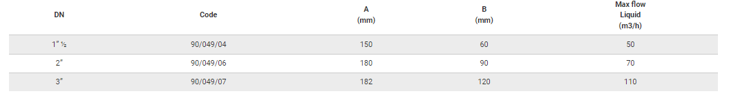 - Max operating pressure (PS) : 17,65 bar(main body) 40bar (stainless steel halves);